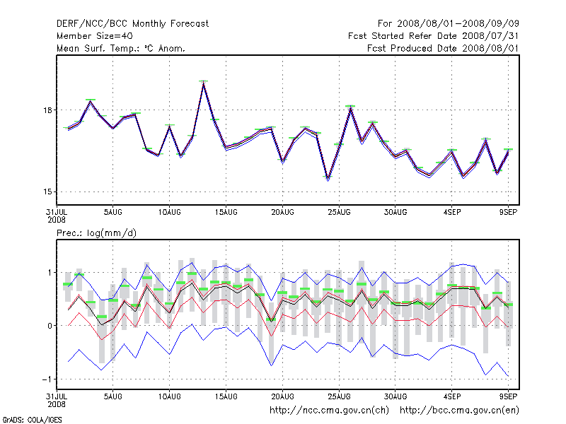 甘 孜 (LAT:31.62 LON:100.00) 2008-08-01        预测