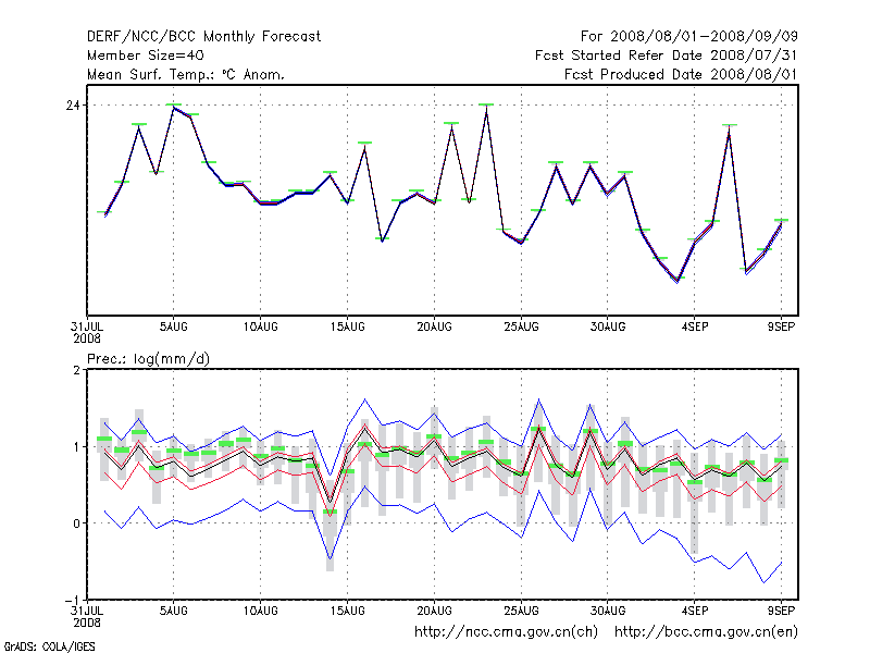临 沧 (LAT:23.95 LON:100.22) 2008-08-01        预测