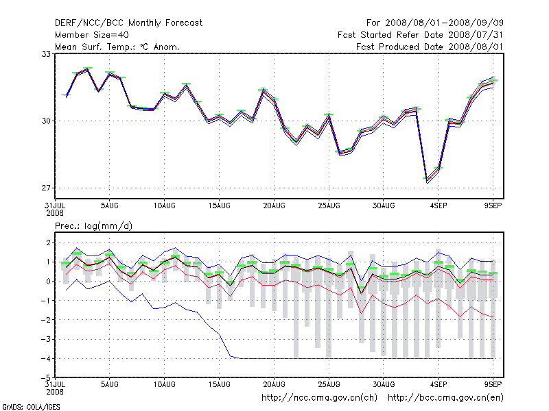 信 阳 (LAT:32.13 LON:114.05) 2008-08-01        预测