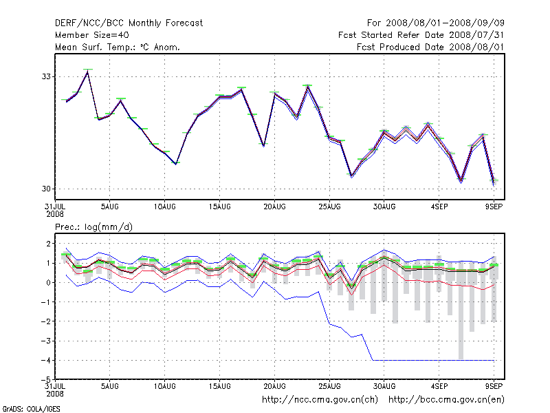 赣 州 (LAT:25.85 LON:114.95) 2008-08-01        预测