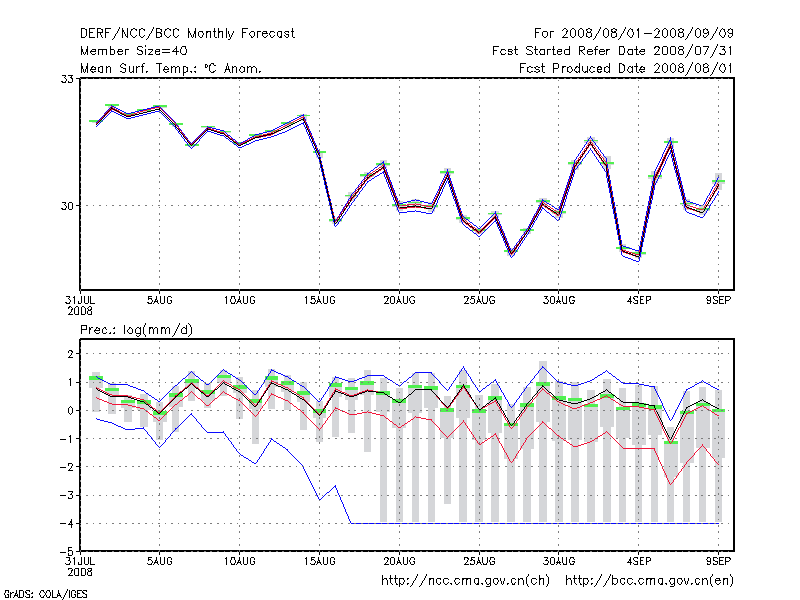 南 京 (LAT:32.00 LON:118.80) 2008-08-01        预测