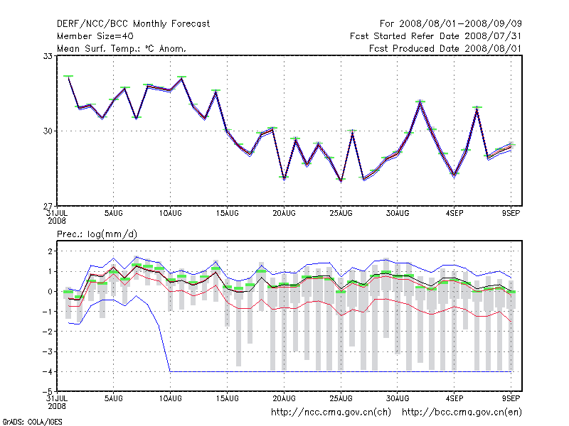 东 台 (LAT:32.87 LON:120.32) 2008-08-01        预测