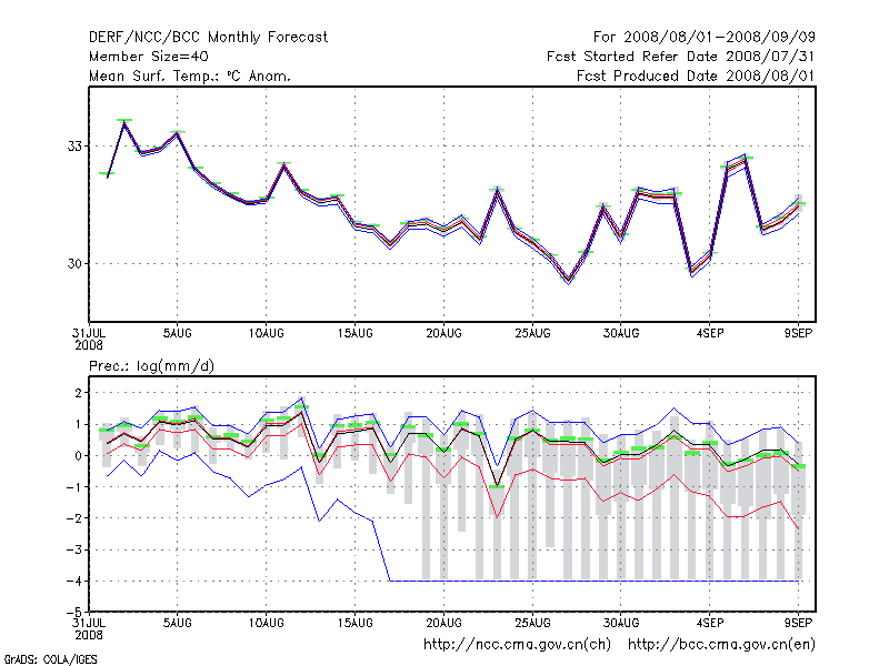 合 肥 (LAT:31.87 LON:117.23) 2008-08-01        预测