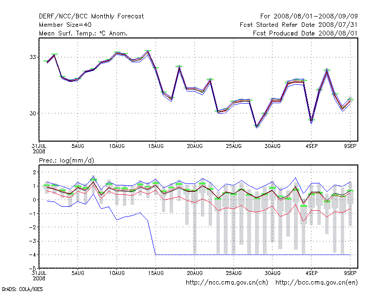 杭 州 (LAT:30.23 LON:120.17) 2008-08-01        预测