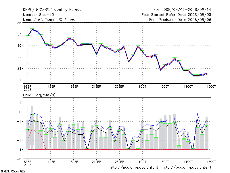 哈 密 (LAT:42.82 LON:93.52) 2008-08-06        预测