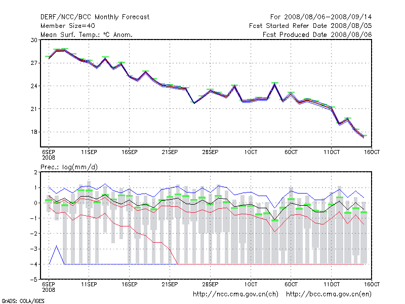 牡 丹 江 (LAT:44.57 LON:129.60) 2008-08-06        预测