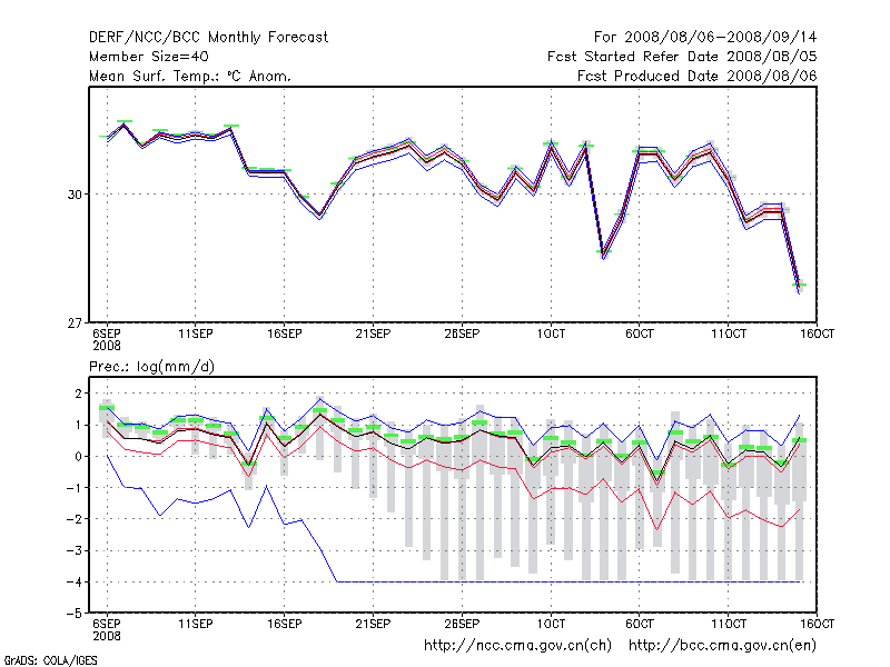 钟 祥 (LAT:31.17 LON:112.57) 2008-08-06        预测