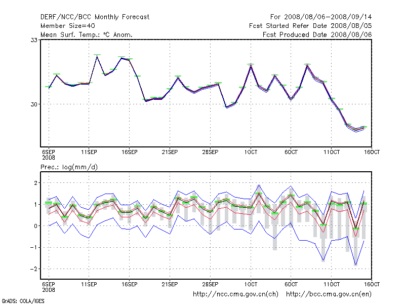 福 州 (LAT:26.08 LON:119.28) 2008-08-06        预测