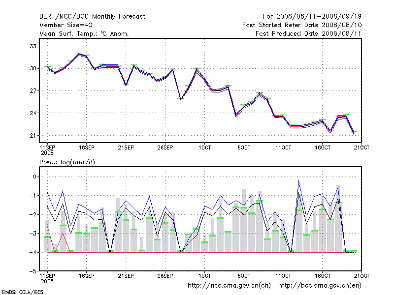 哈 密 (LAT:42.82 LON:93.52) 2008-08-11        预测