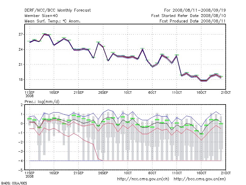 延 吉 (LAT:42.88 LON:129.47) 2008-08-11        预测