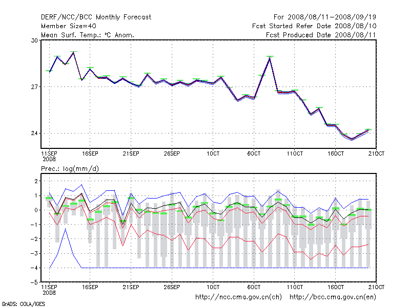 青 岛 (LAT:36.07 LON:120.33) 2008-08-11        预测