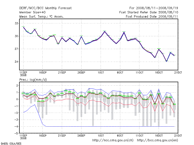 东 台 (LAT:32.87 LON:120.32) 2008-08-11        预测