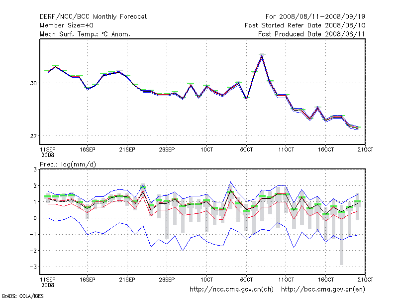 温 州 (LAT:28.02 LON:120.67) 2008-08-11        预测