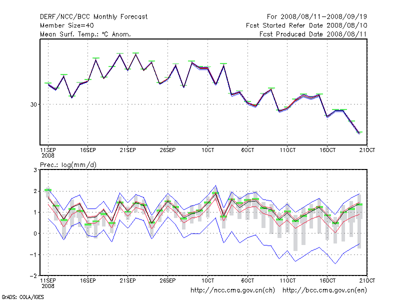 湛 江 (LAT:21.22 LON:110.40) 2008-08-11        预测