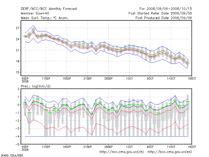 青 岛 (LAT:36.07 LON:120.33) 2008-09-06        预测