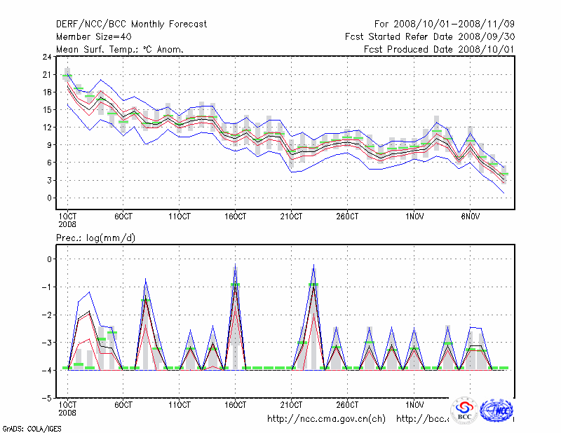 若 羌 (LAT:39.03 LON:88.17) 2008-10-01        预测