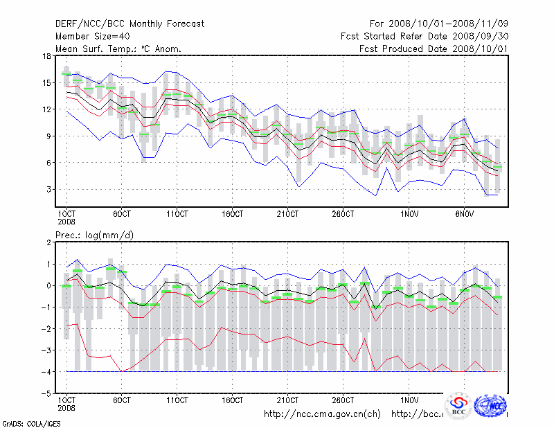 延 安 (LAT:36.60 LON:109.50) 2008-10-01        预测