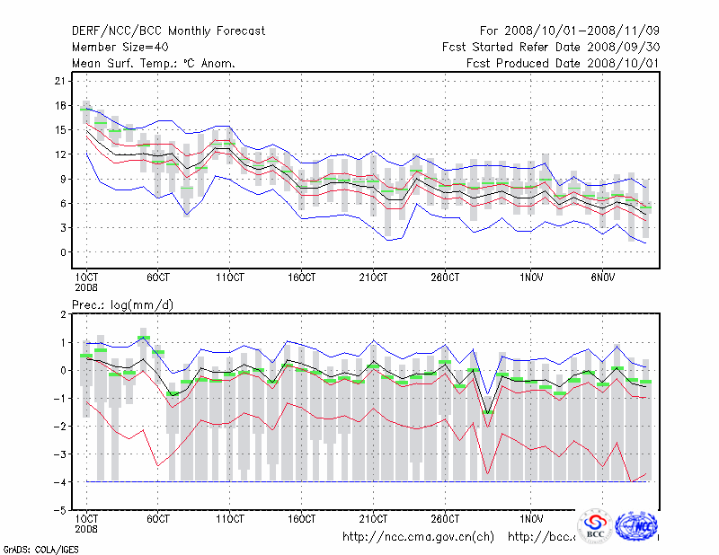 西 峰 镇 (LAT:35.73 LON:107.63) 2008-10-01        预测