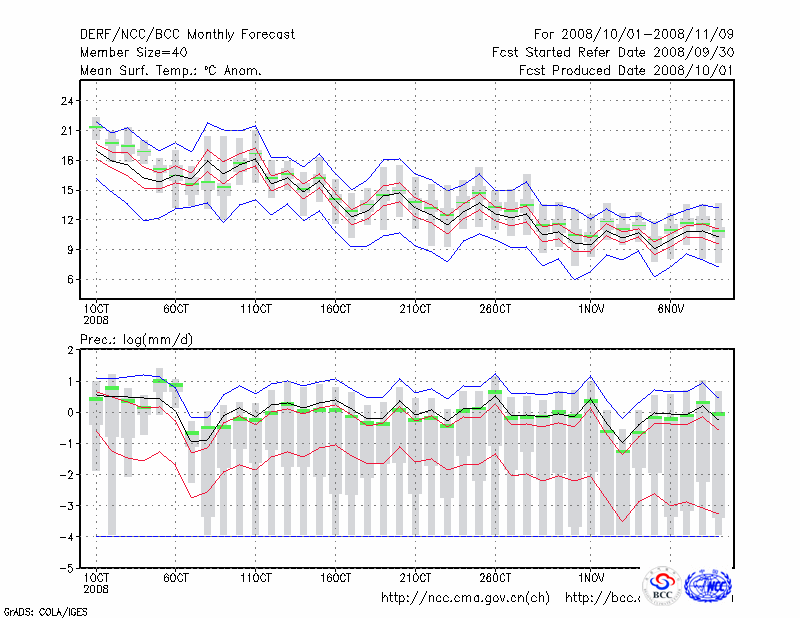 西 安 (LAT:34.30 LON:108.93) 2008-10-01        预测