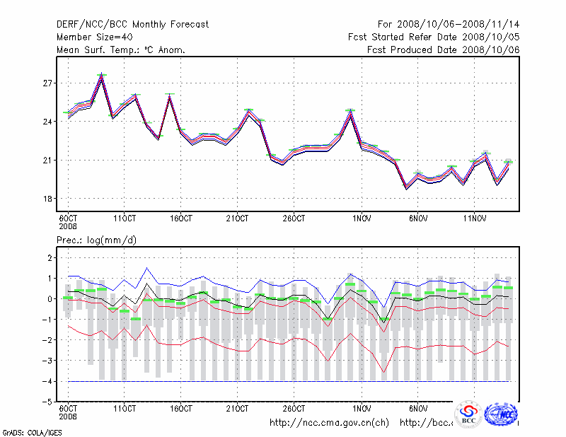 岳 阳 (LAT:29.38 LON:113.08) 2008-10-06        预测