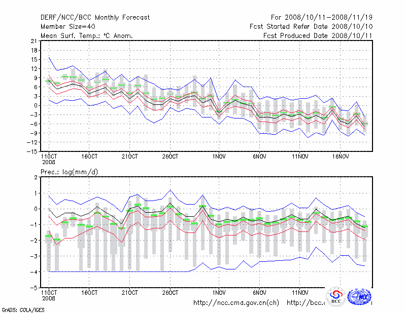 牡 丹 江 (LAT:44.57 LON:129.60) 2008-10-11        预测