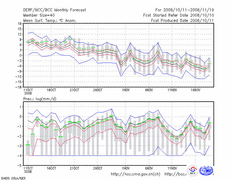锡林浩特 (LAT:43.95 LON:116.07) 2008-10-11        预测