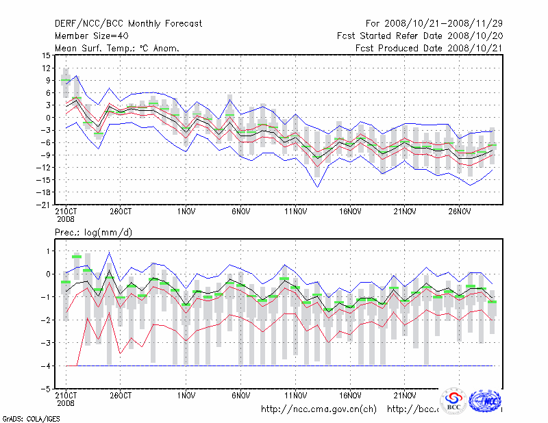 哈 尔 滨 (LAT:45.75 LON:126.77) 2008-10-21        预测