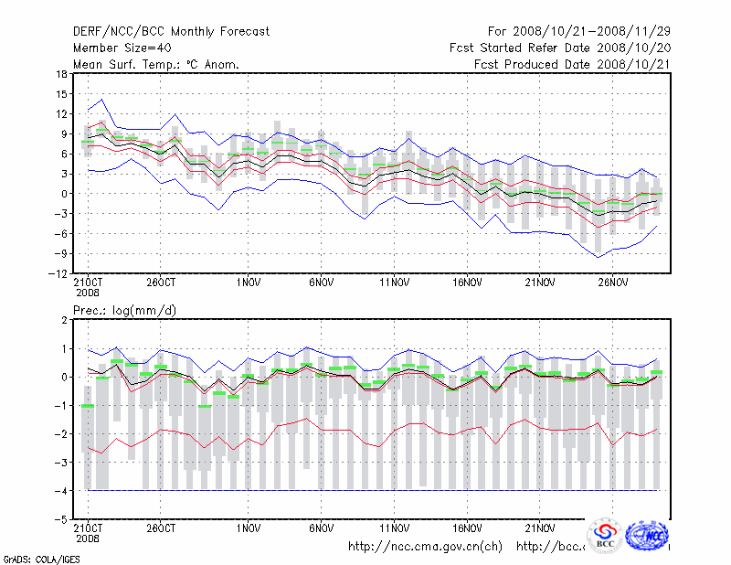 伊 宁 (LAT:43.95 LON:81.33) 2008-10-21        预测