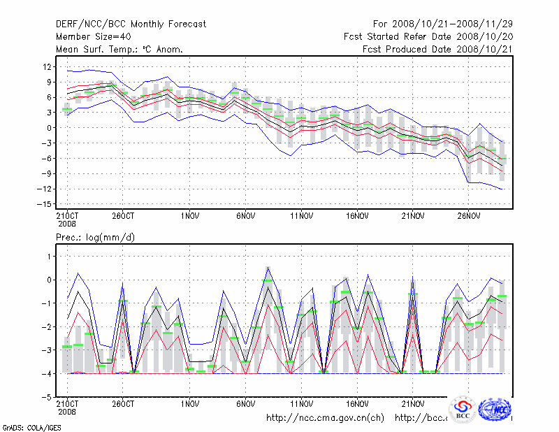 哈 密 (LAT:42.82 LON:93.52) 2008-10-21        预测