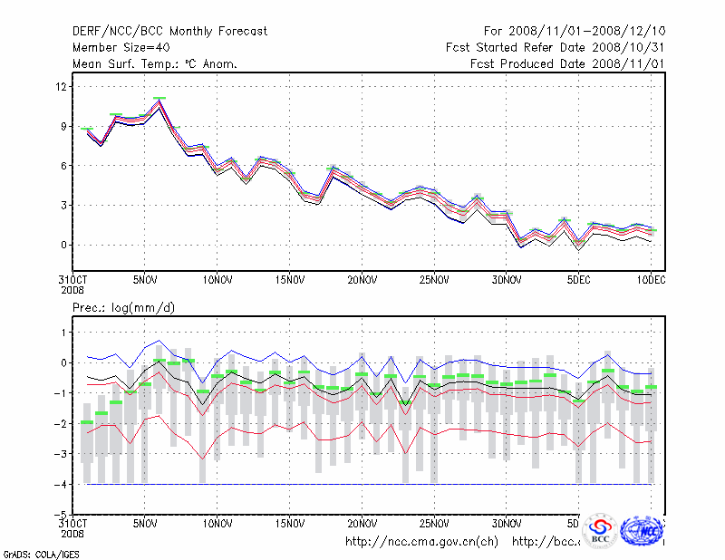 乌 苏 (LAT:44.43 LON:84.66) 2008-11-01        预测