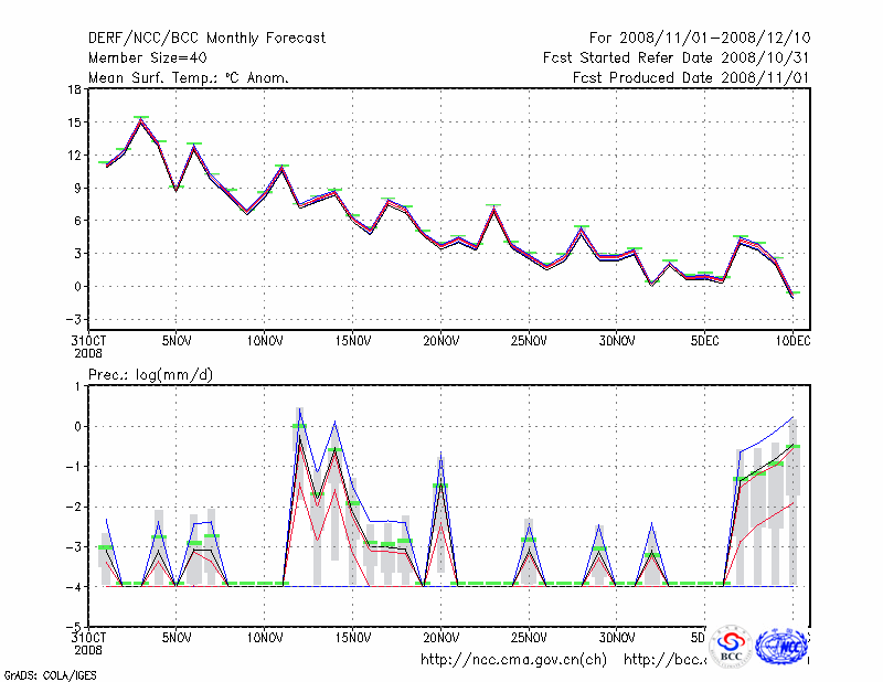 若 羌 (LAT:39.03 LON:88.17) 2008-11-01        预测