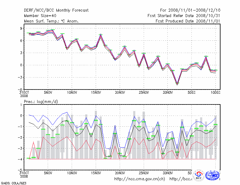 呼和浩特 (LAT:40.82 LON:111.68) 2008-11-01        预测