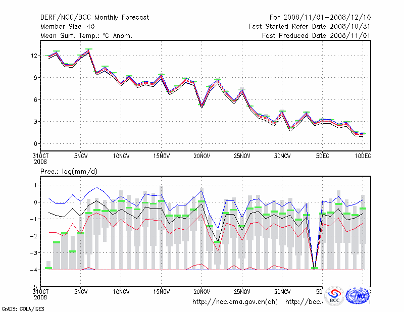 延 安 (LAT:36.60 LON:109.50) 2008-11-01        预测