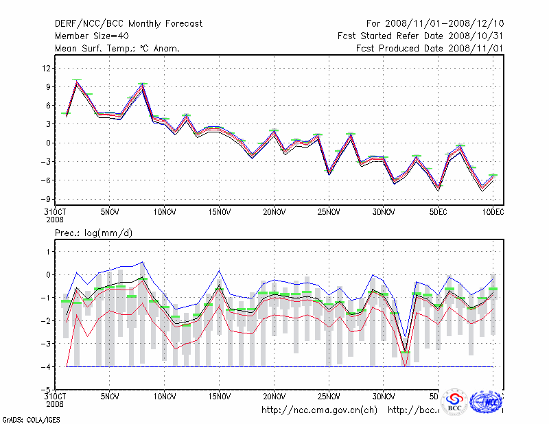 锡林浩特 (LAT:43.95 LON:116.07) 2008-11-01        预测