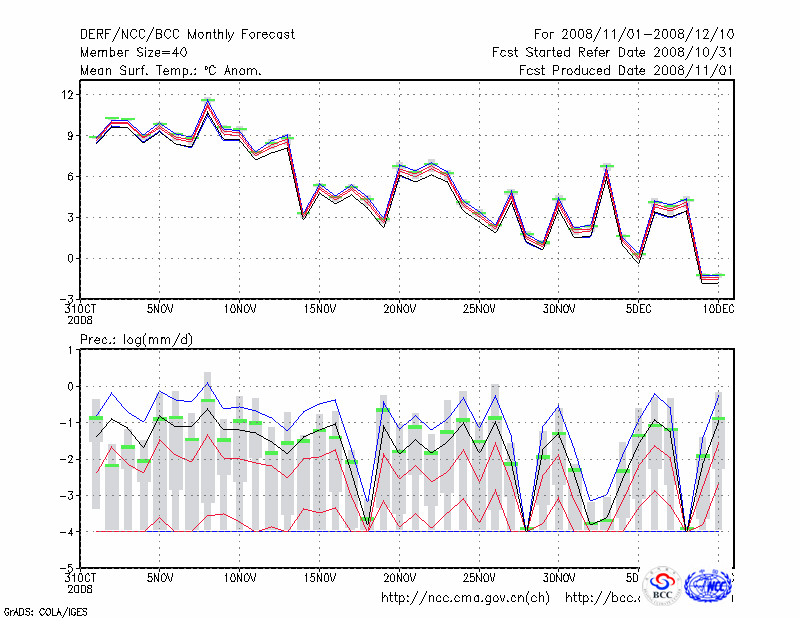 赤 峰 (LAT:42.27 LON:118.97) 2008-11-01        预测