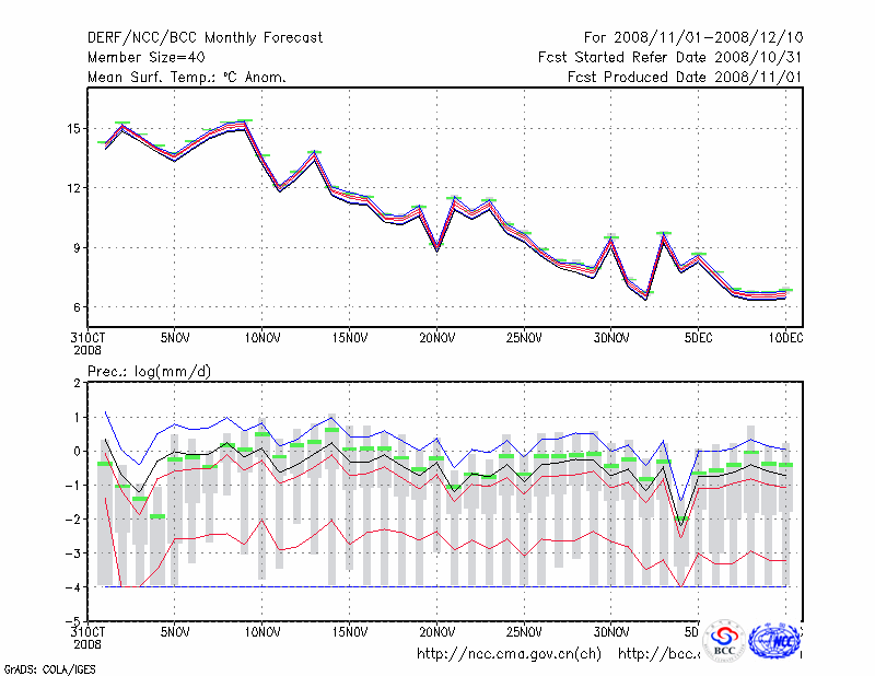西 安 (LAT:34.30 LON:108.93) 2008-11-01        预测