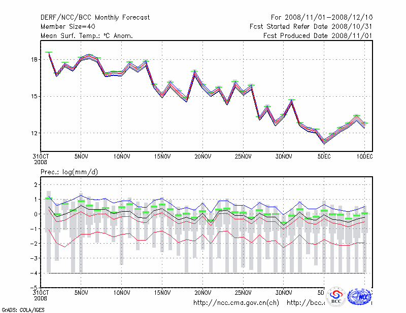 恩 施 (LAT:30.28 LON:109.47) 2008-11-01        预测