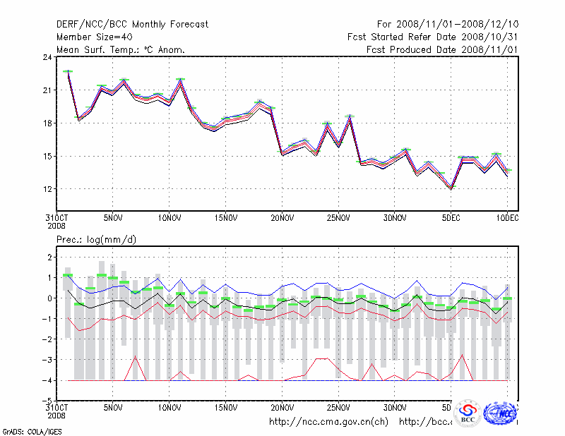 杭 州 (LAT:30.23 LON:120.17) 2008-11-01        预测