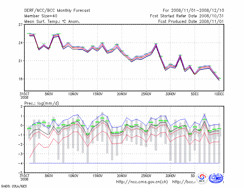 福 州 (LAT:26.08 LON:119.28) 2008-11-01        预测