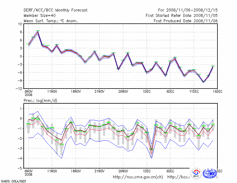 锡林浩特 (LAT:43.95 LON:116.07) 2008-11-06        预测
