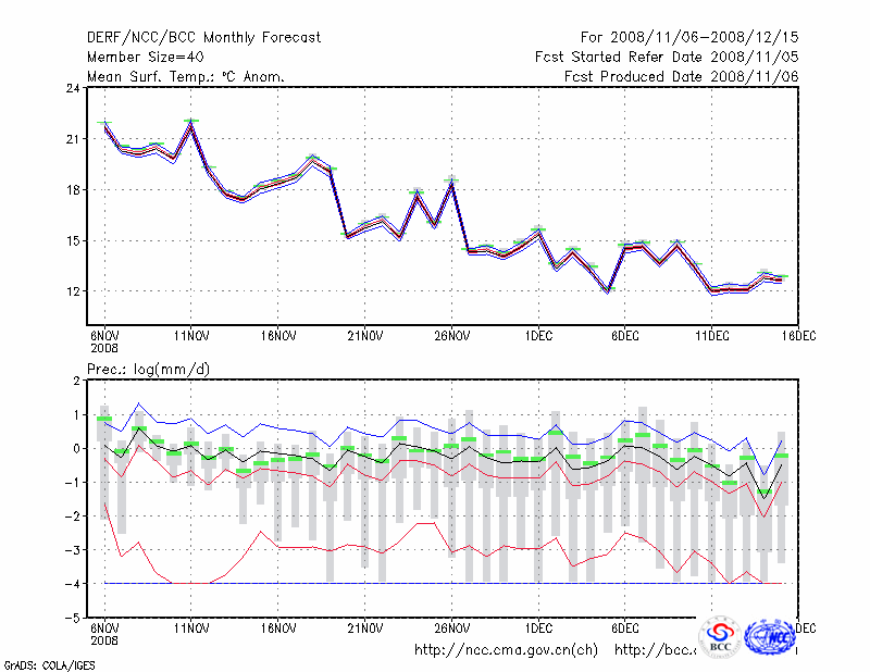杭 州 (LAT:30.23 LON:120.17) 2008-11-06        预测