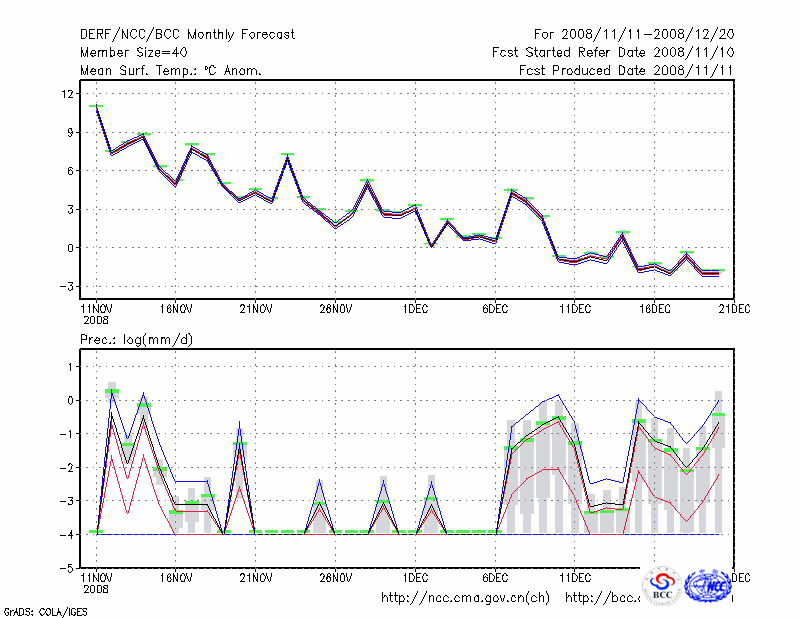 若 羌 (LAT:39.03 LON:88.17) 2008-11-11        预测