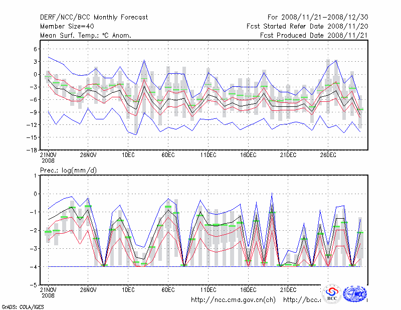赤 峰 (LAT:42.27 LON:118.97) 2008-11-21        预测