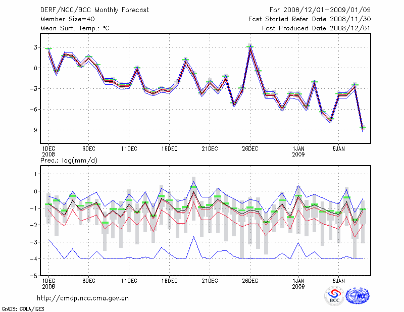长 春 (LAT:43.90 LON:125.22) 2008-12-01        预测