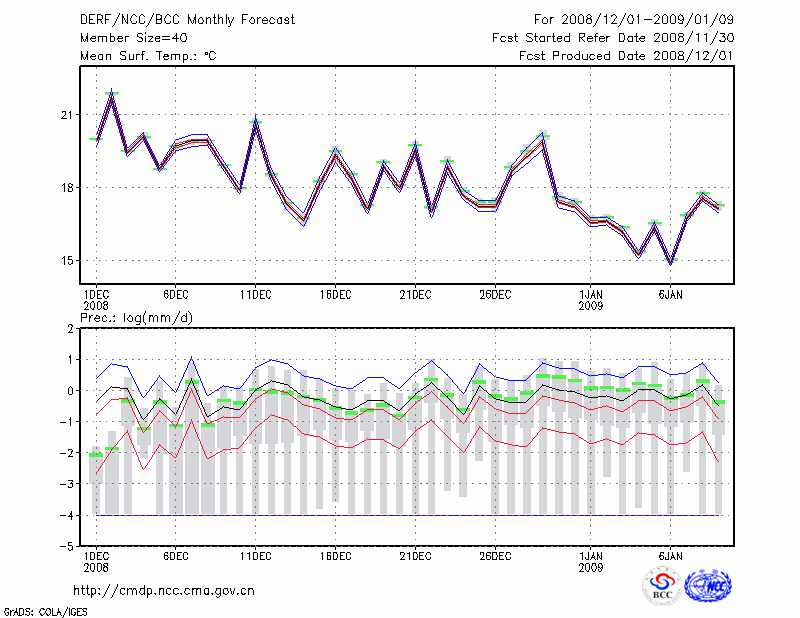 福 州 (LAT:26.08 LON:119.28) 2008-12-01        预测