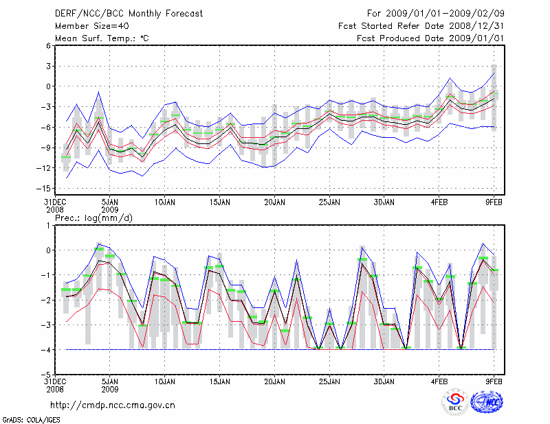 若 羌 (LAT:39.03 LON:88.17) 2009-01-01        预测