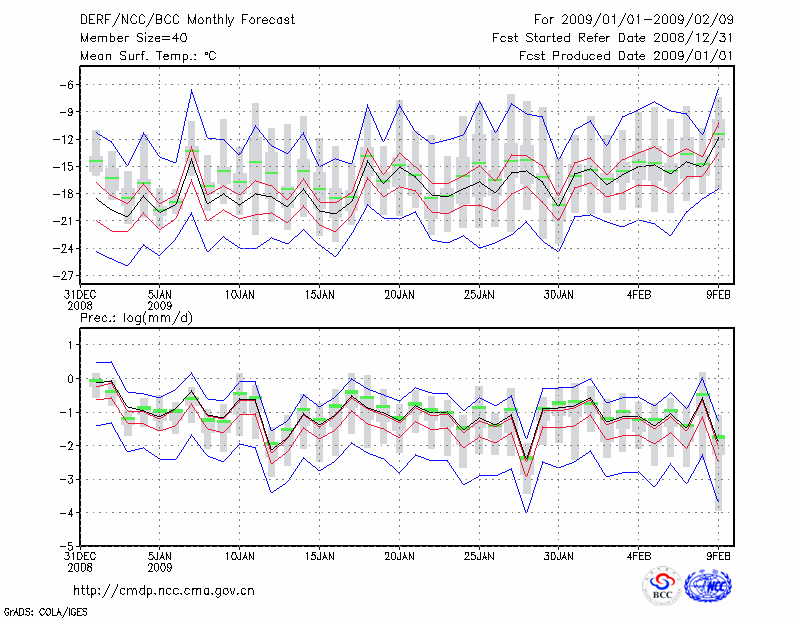 牡 丹 江 (LAT:44.57 LON:129.60) 2009-01-01        预测
