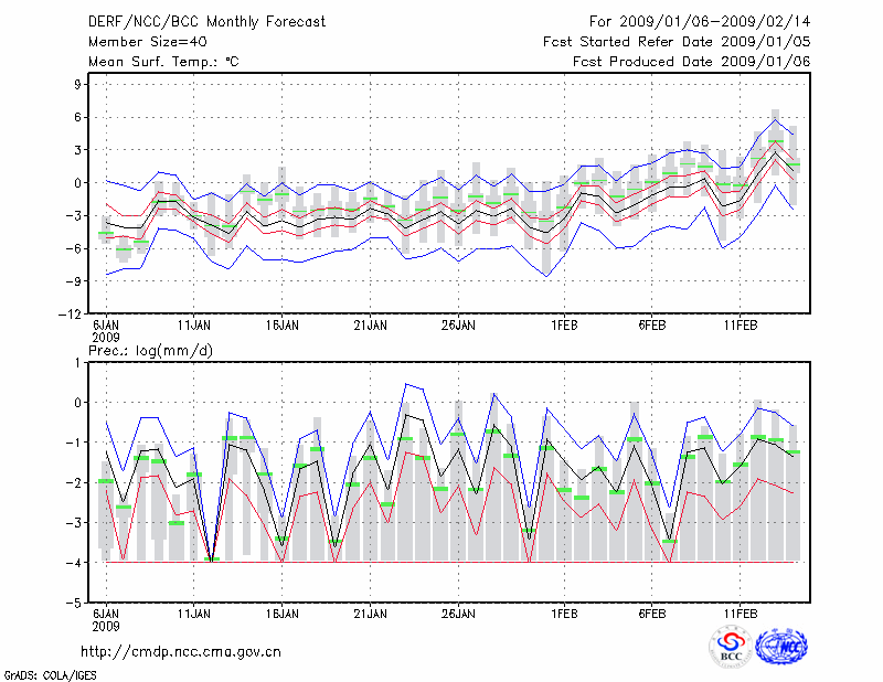 天 津 (LAT:39.10 LON:117.17) 2009-01-06        预测