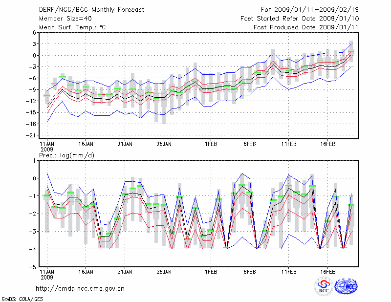哈 密 (LAT:42.82 LON:93.52) 2009-01-11        预测