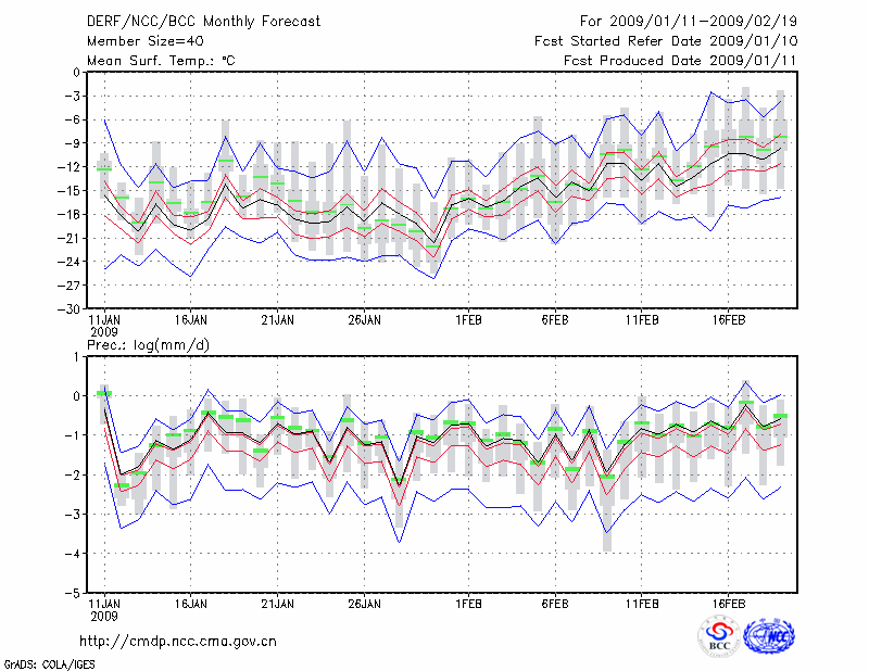 牡 丹 江 (LAT:44.57 LON:129.60) 2009-01-11        预测